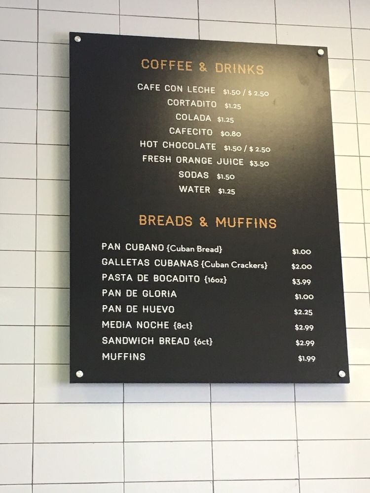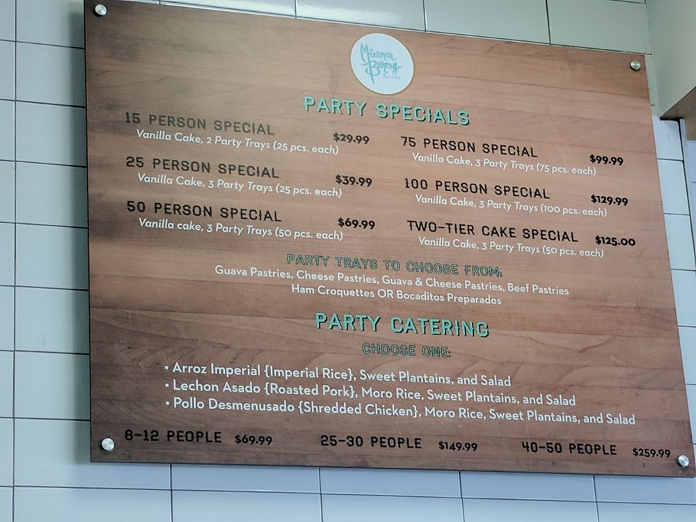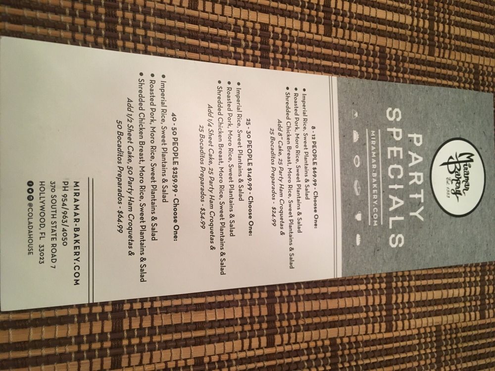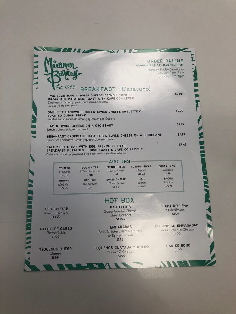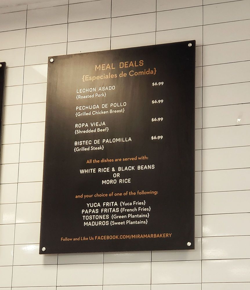 Miramar Bakery Menu
